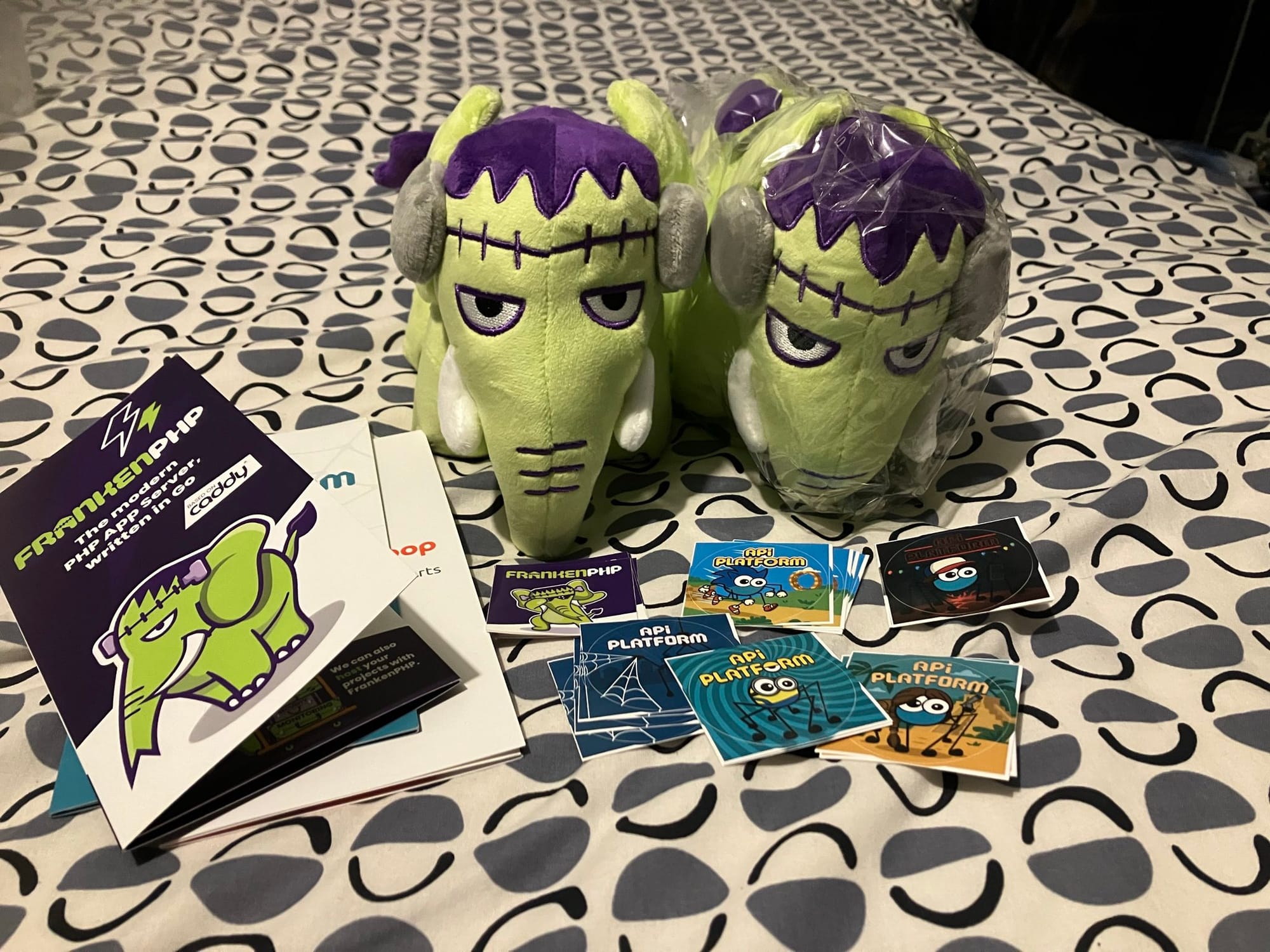 I also got A LOT of FrankenPHP stickers! Getting 2 means I have 1 up for trade, so if you didn't get your hands on one, send me a message and we can organise a trade!